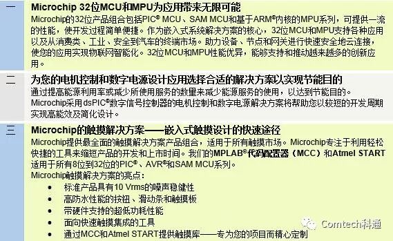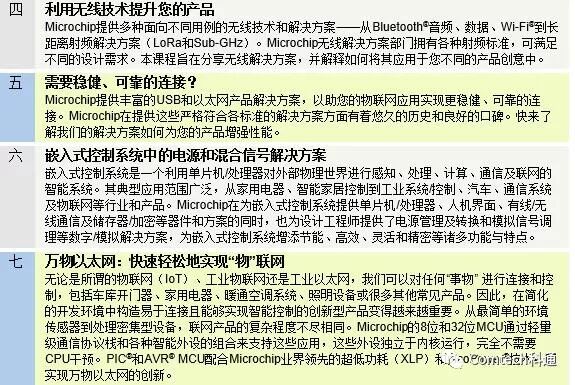 Microchip丰富的“嵌入式解决方案”,这些方案均可智能互连,从而满足人们在新时代中的一切需求。“家居自动化整体解决方案”就是一个很好的例证。该解决方案可以将传感器与家中的所有小型电器相连,为您提供安全、便捷和舒适的生活。此外,我们的智能互连技术还可以进一步延伸,让您可访问和控制诸如物联网(IoT)等其他系统。这些智能嵌入式解决方案背后的先进技术由我们在触摸传感与手势控制、电源转换、安全、电机控制、图形、模拟电源、混合信号与接口、无线连接(Bluetooth®/Wi-Fi®/SubGHz)和有线连接(USB/以太网)等领域的强大实力为后盾。在即将举行的嵌入式解决方案研讨会中,我们会对这些技术进行深入而细致地讨论。另外,我们还将通过家居网关演示套件向您展示我们其他的智能模块联网技术,让Microchip嵌入式解决方案助您实现所需的一切应用。